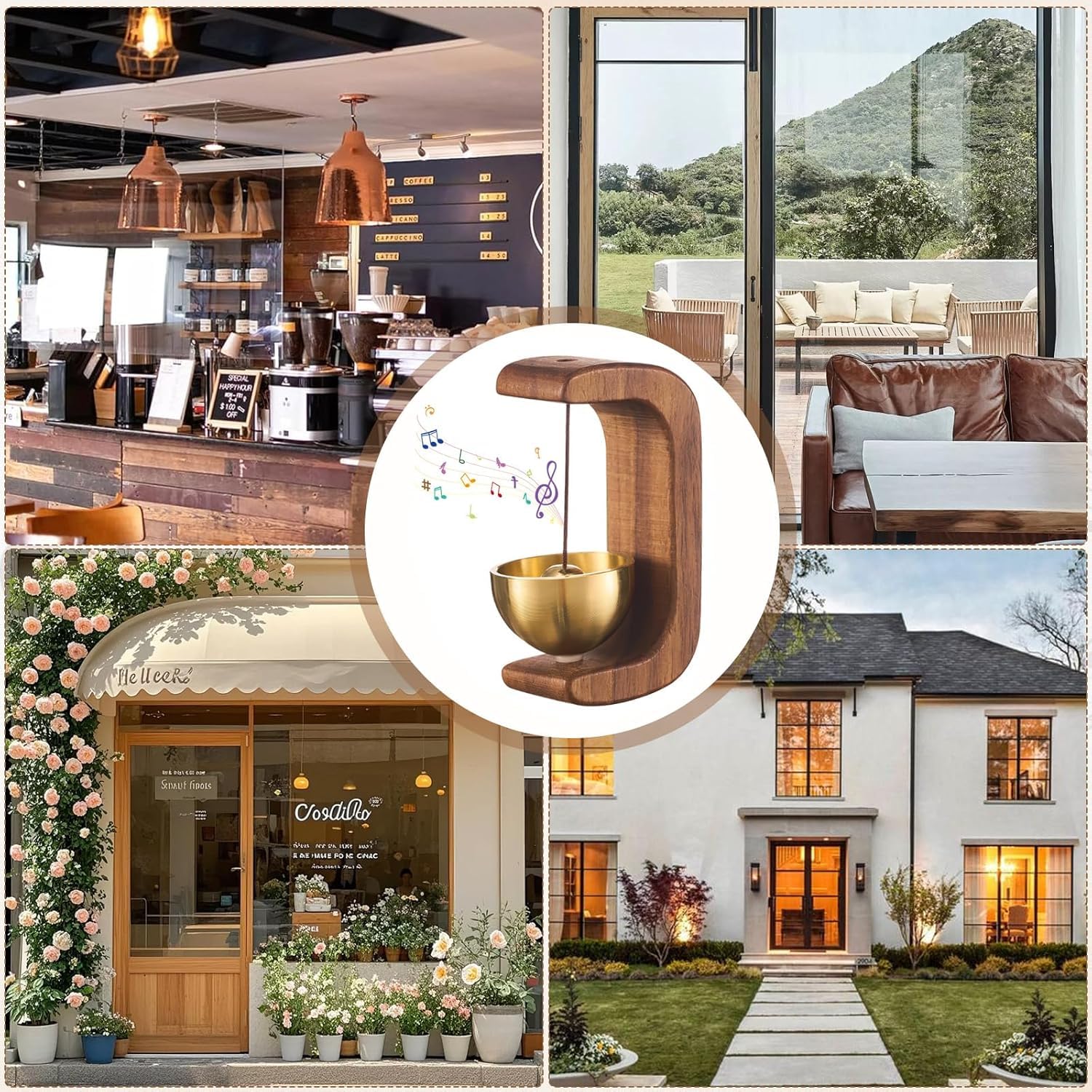Door Bell, Wooden Door Bell Without Wire Send Adhesive Tape, Dopamine Store Entrance Doorbell, Sound for Homes, Restaurant, Decoration Multifunctional (Dark Wood)