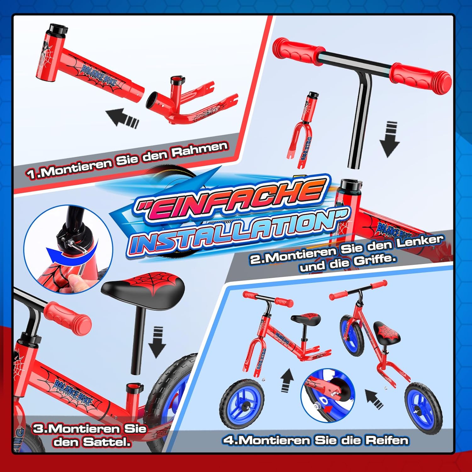 Braxel Laufrad ab 2-6 Jahre bis zu 35 kg, Balance Bike Lauflernwagen Lauflernrad Kider Spielzeug 2-6 Jahre Geschenke Jungen Mädchen, Lenkrad und Sattel Höhenverstellbar, Weihnachts Geschenk Kinder Warnhinweise
